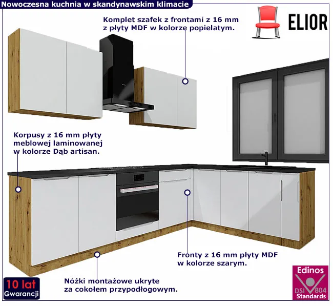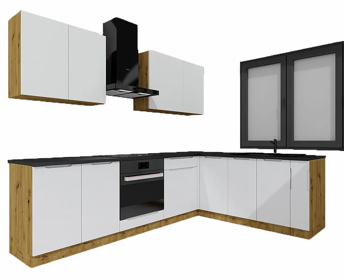 Komplet narożnych szafek kuchennych 260 cm dąb artisan + szary - Orfa 28X