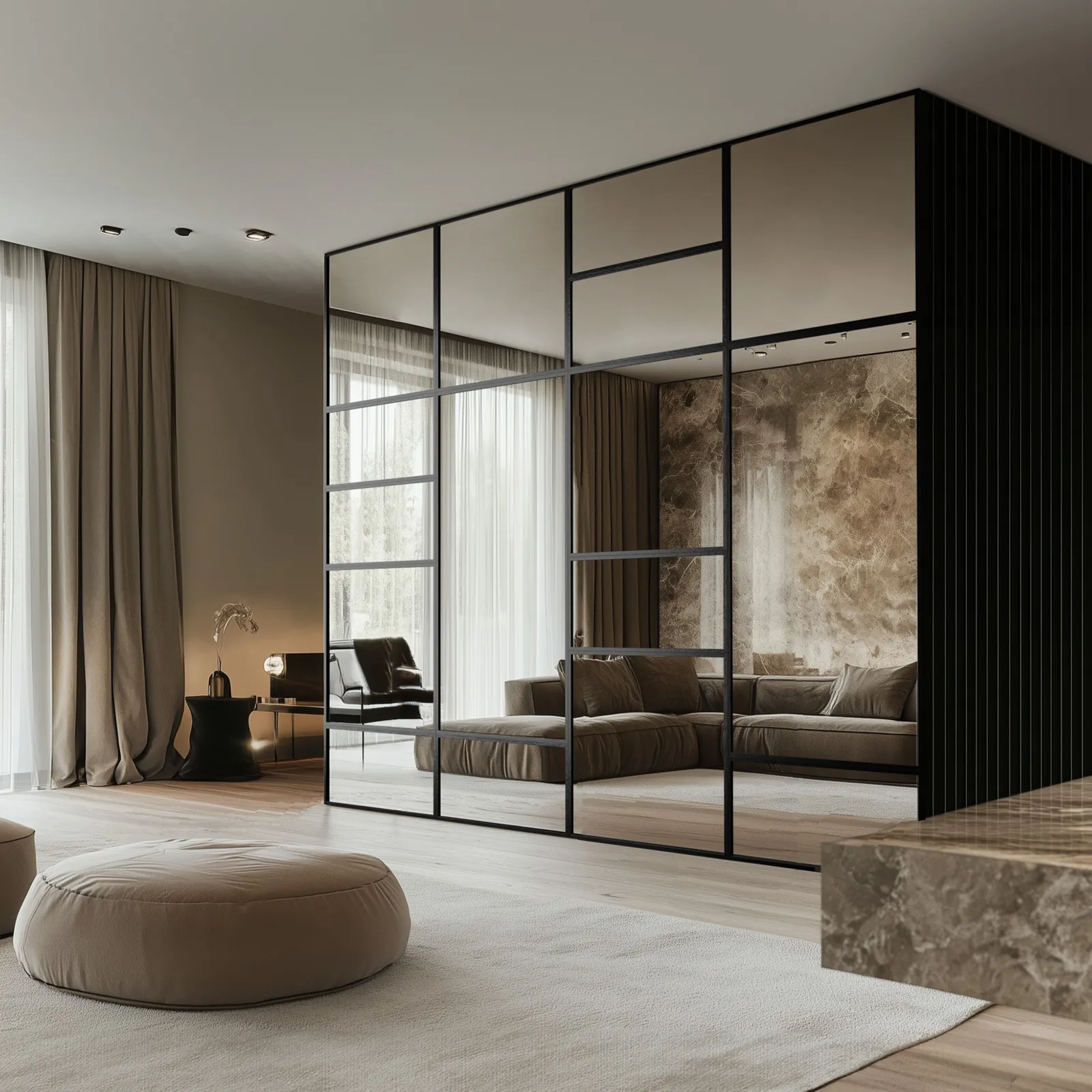 • wyjątkowy efekt wizualny – odbijające światło lustra optycznie powiększają przestrzeń i dodają jej lekkości,