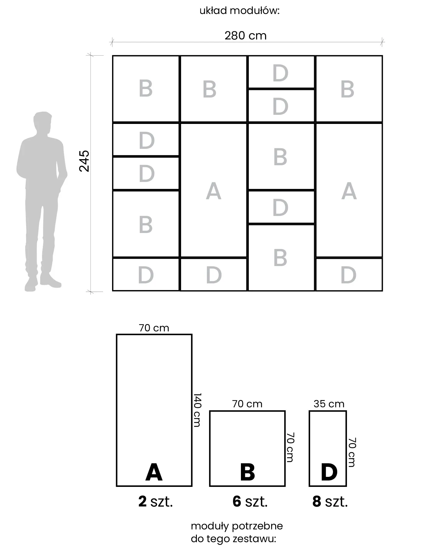 • szerokość: 280 cm, wysokość 245 cm.