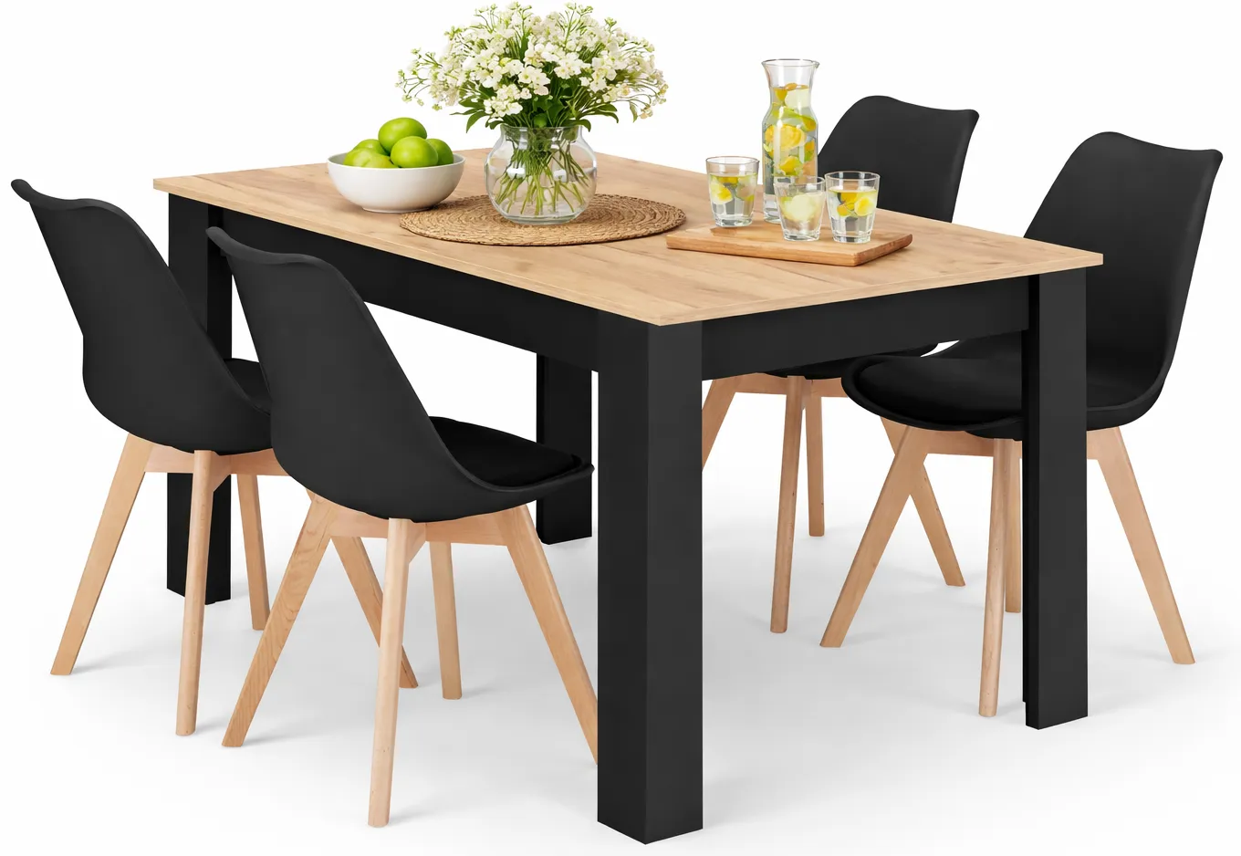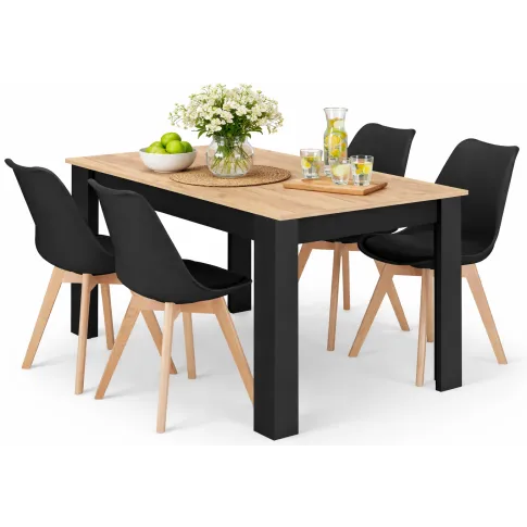 • Stół o ponadczasowym wyglądzie – prostokątny blat w modnym wybarwieniu artisan i kontrastowe czarne nogi tworzą elegancki duet.