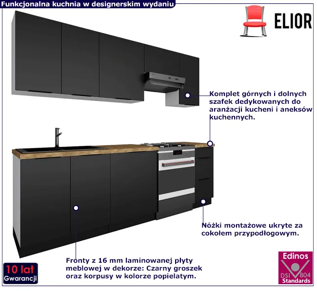 • Modny kolor: korpusy: Popielaty, fronty: Czarny groszek.
