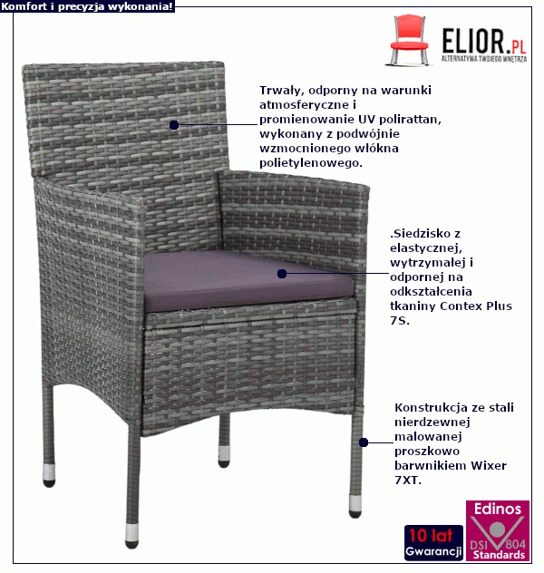 Dotyczy: Komplet szarych krzeseł ogrodowych - Lustika 4X