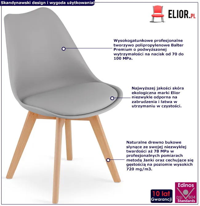 Dotyczy: Komplet białych skandynawskich krzeseł z poduszką 4 szt. - Ares 3S