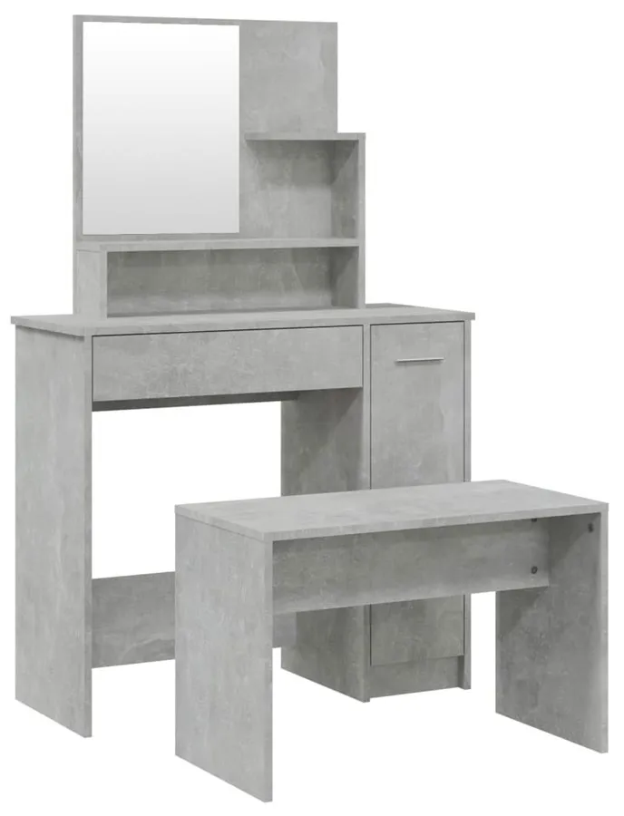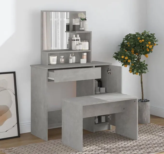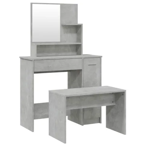 Komplet toaletka do makijażu z taboretem szarość betonu - Haleb 5X