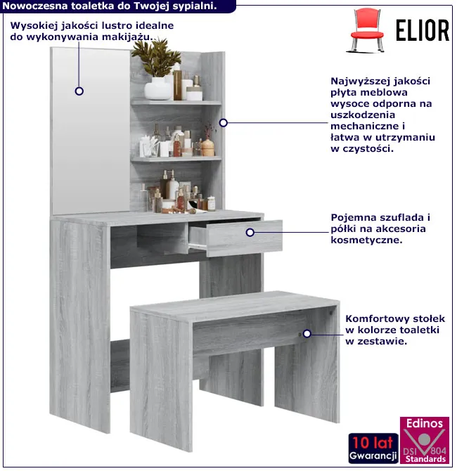 Dotyczy: Toaletka kosmetyczna z lustrem i stołkiem przydymiony dąb - Aleksa