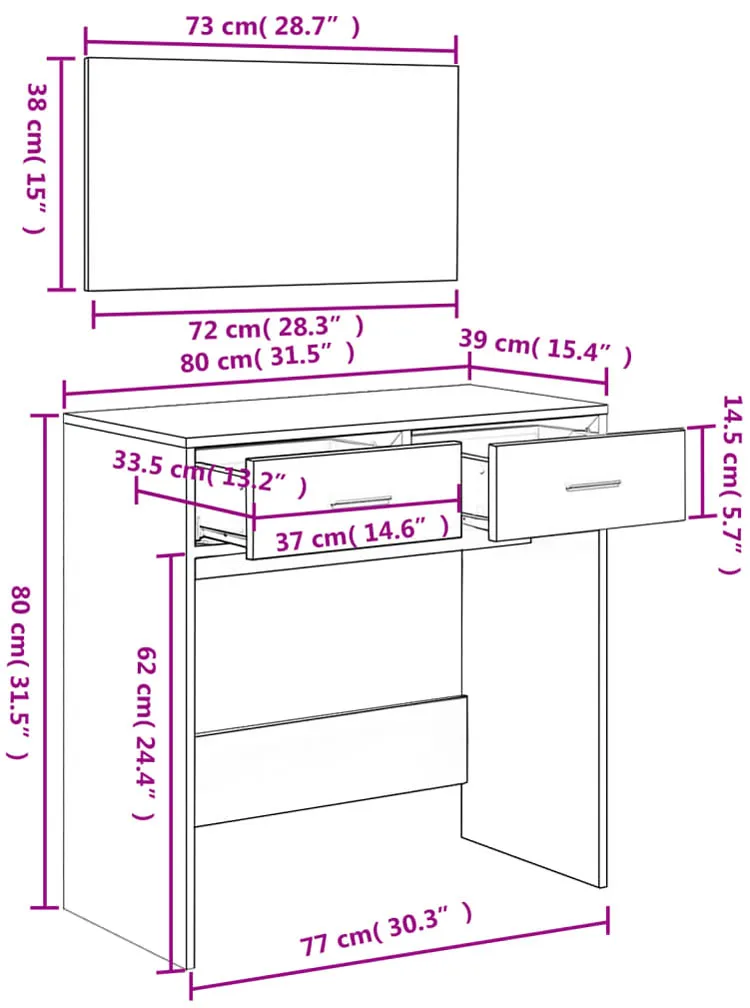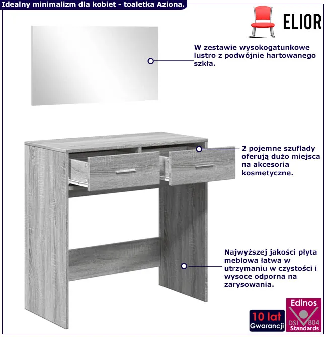 Dotyczy: Toaletka kosmetyczna z lustrem ściennym brązowy dąb - Milu
