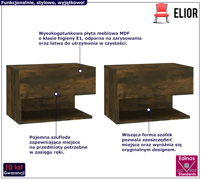 Dotyczy: Zestaw wiszących brązowych szafek nocnych - Nidan