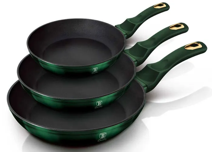 Komplet zielonych patelni z powłoką granitową - Fisko 9X