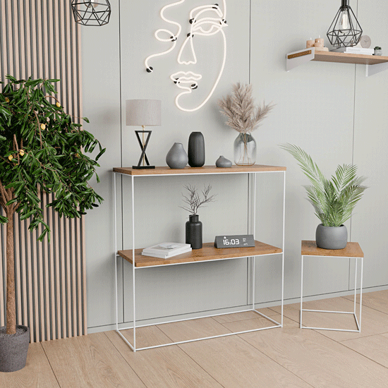 Konsola nowoczesna do przedpokoju dąb lancelot + biały - Rage 3X