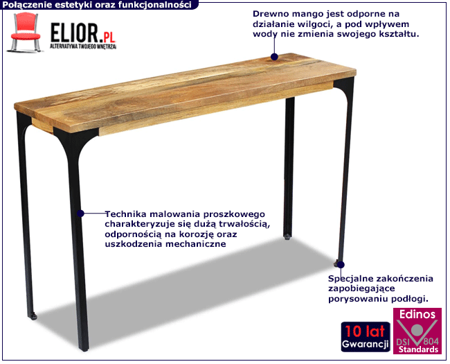 • Materiał: blat z najwyższej jakości drewna mango oraz stalowe nogi.