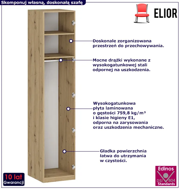 Dotyczy: Biały korpus szafy z dwiema półkami i drążkiem 50 cm - Jonix 7X