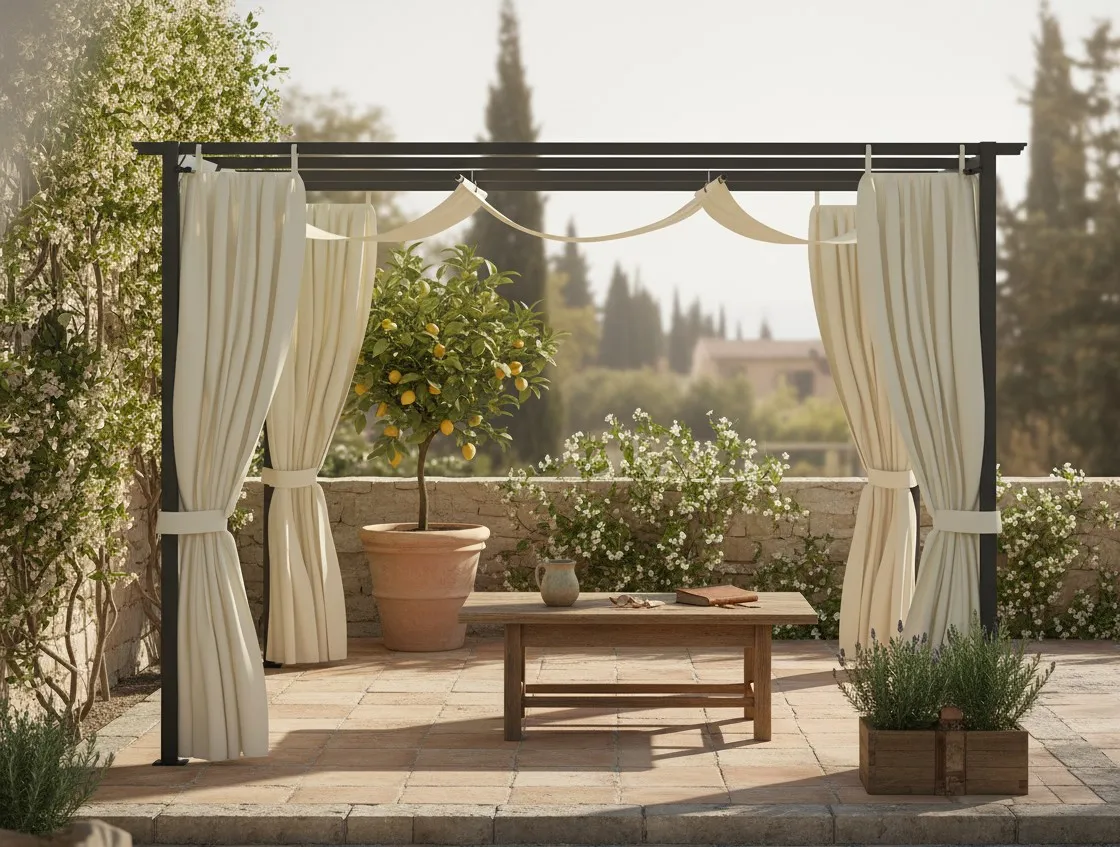• Dodatkowe zasłony zapewniają większą prywatność i cień podczas spotkań, tworząc atmosferę intymności i komfortu.