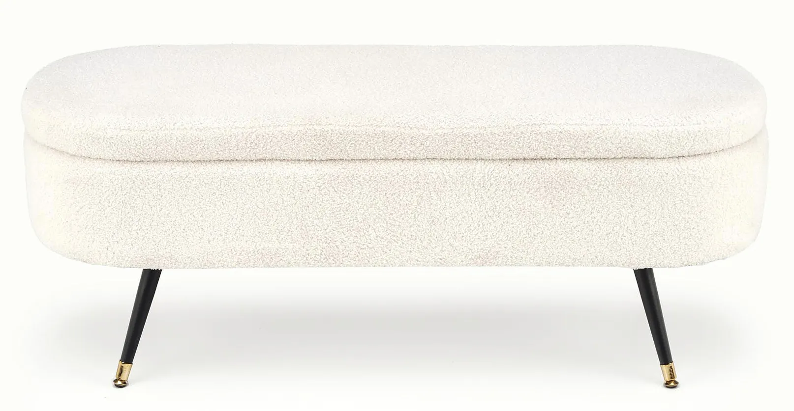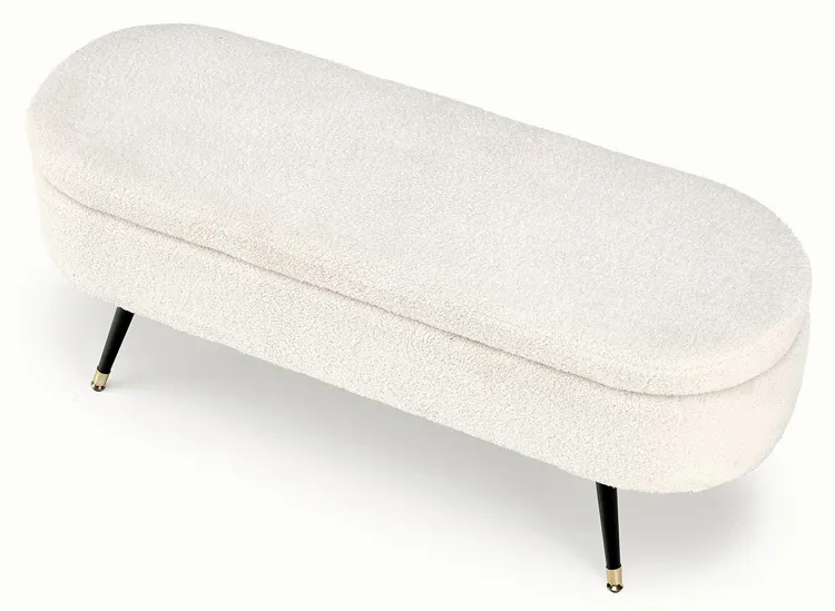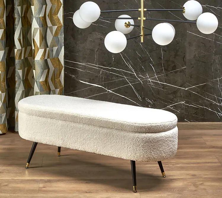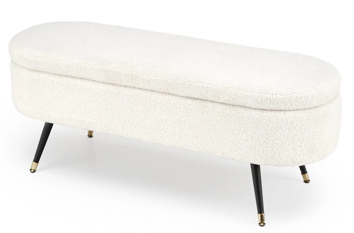 Kremowa ławka z tkaniny boucle ze schowkiem - Olvero