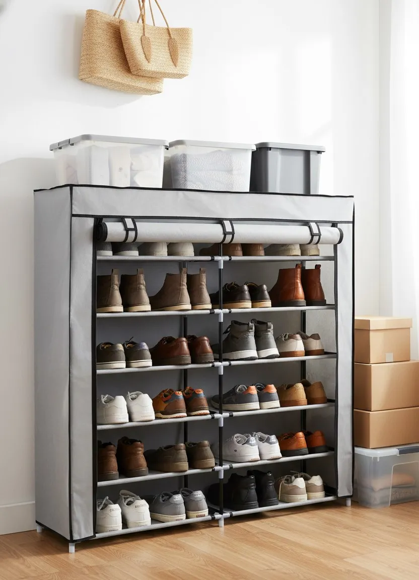 Kremowa materiałowa szafa na buty - Regis 6X