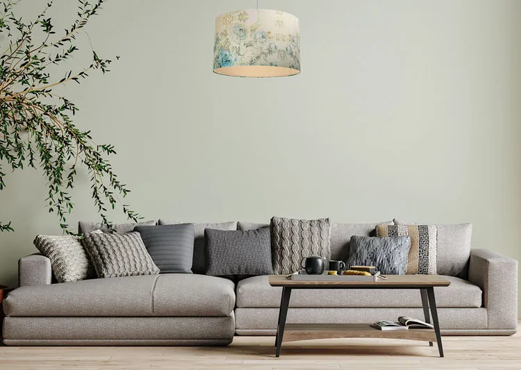 Materiał: abażur - wysokojakościowa tkanina strukturalna z nadrukiem, trwałe tworzywo PCV, podsufitka - metal