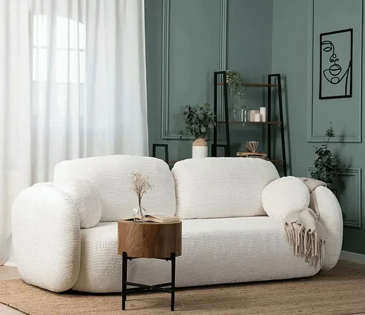 • obłe kształty kanapy dodają wnętrzu przytulności i nowatorskiego charakteru