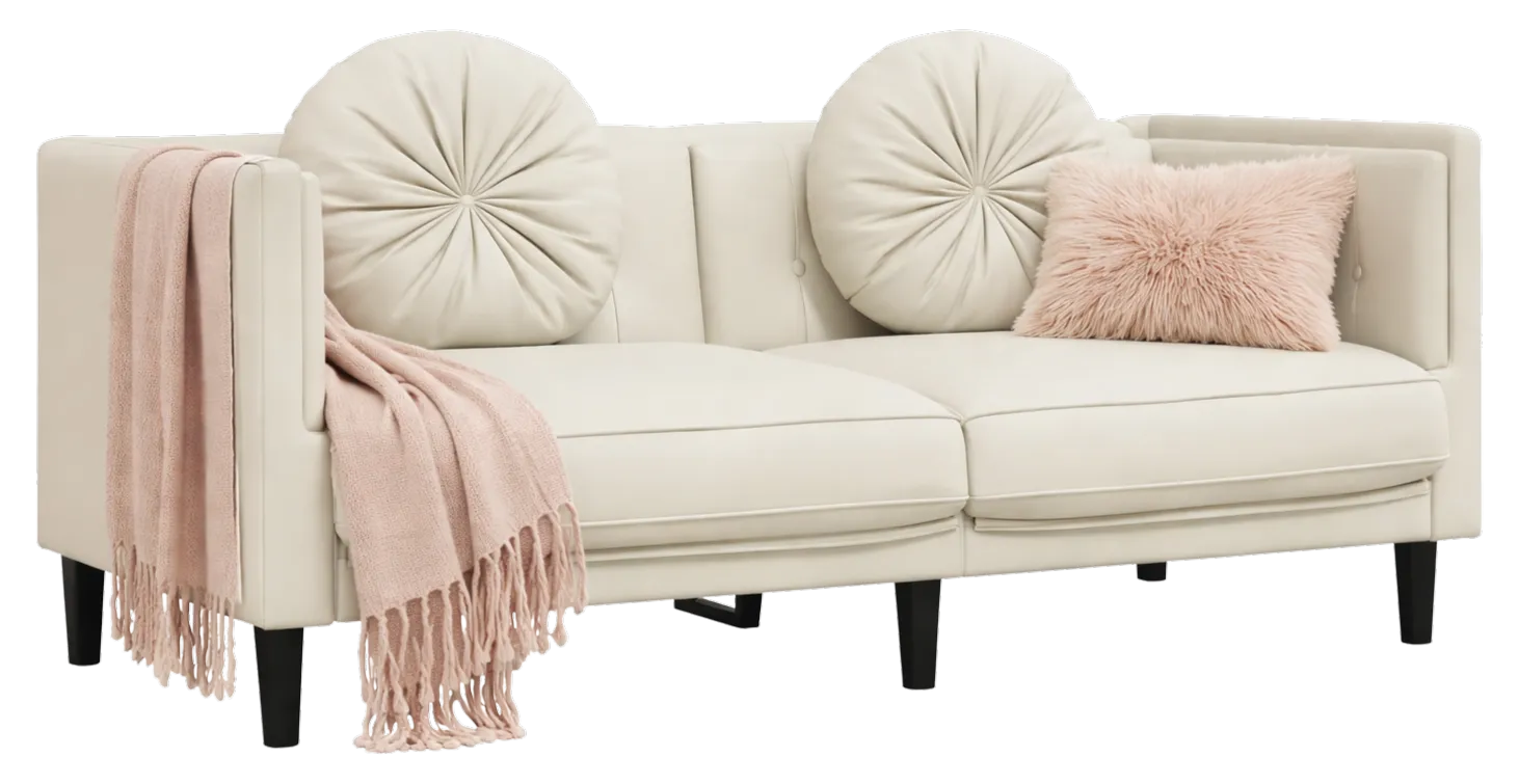 Kremowa stylowa sofa 2-osobowa z poduszkami - FINO 4X
