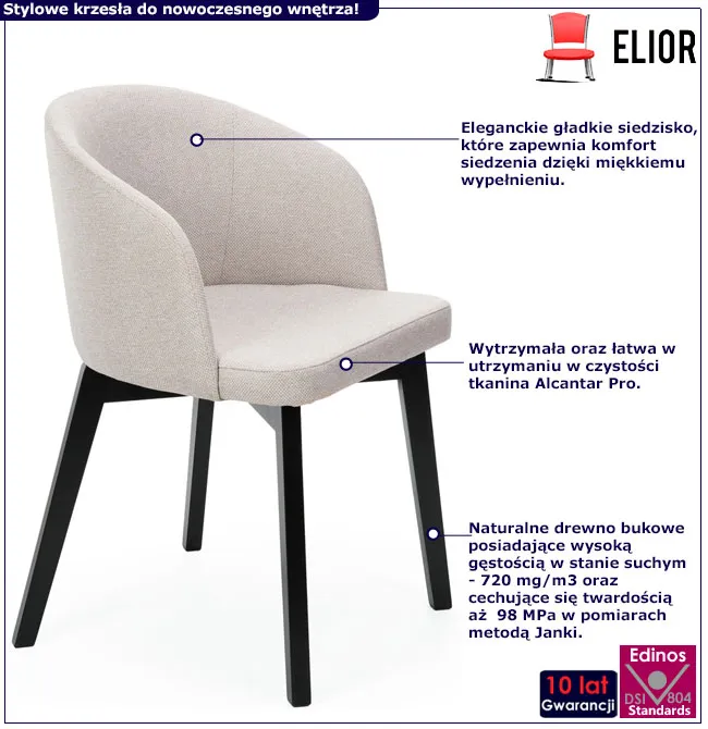 Dotyczy: Beżowe drewniane krzesło welurowe na czarnych nogach - Fima 5X