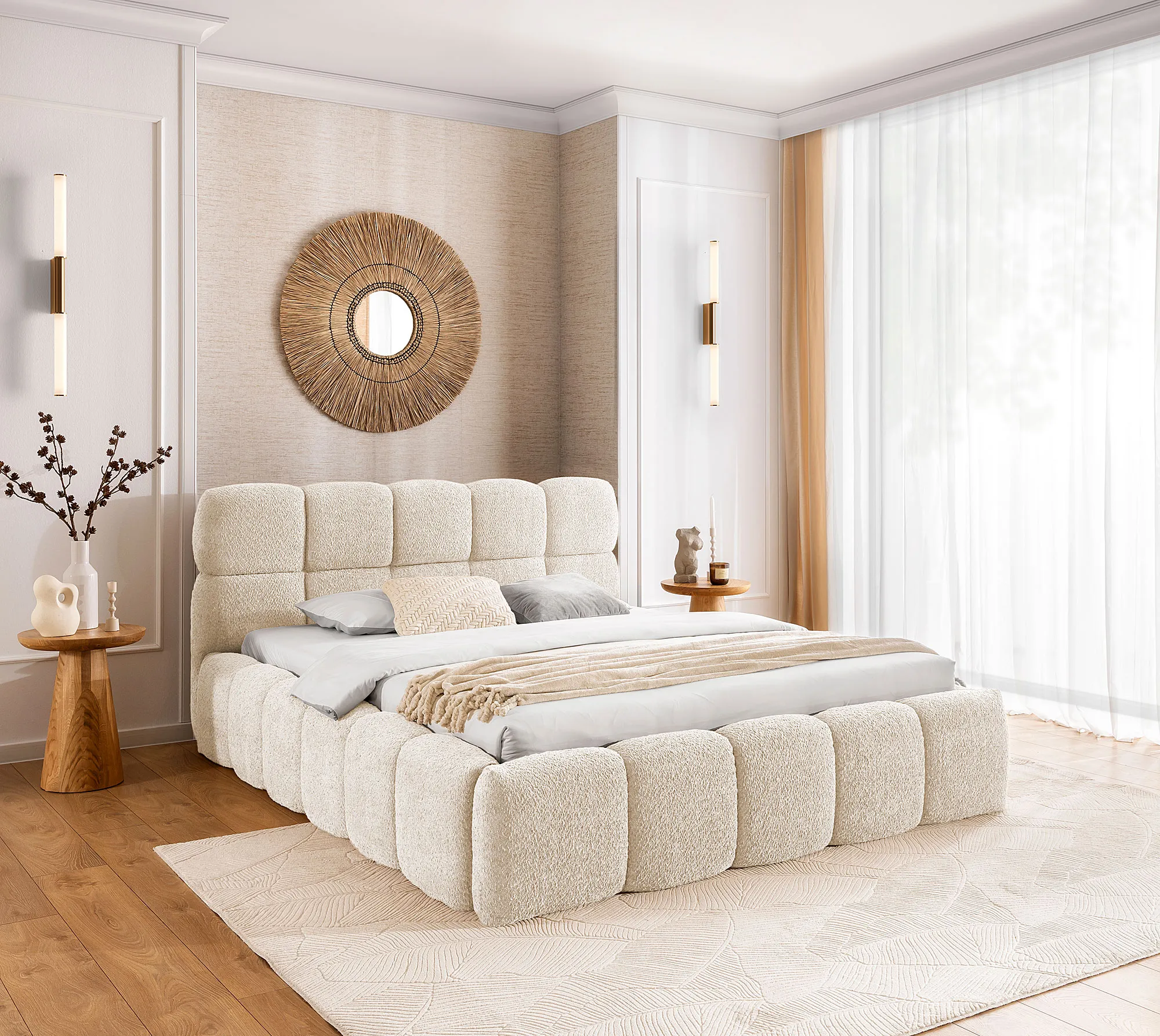 Kremowe łóżko chmurka boucle 5 rozmiarów - Mellario