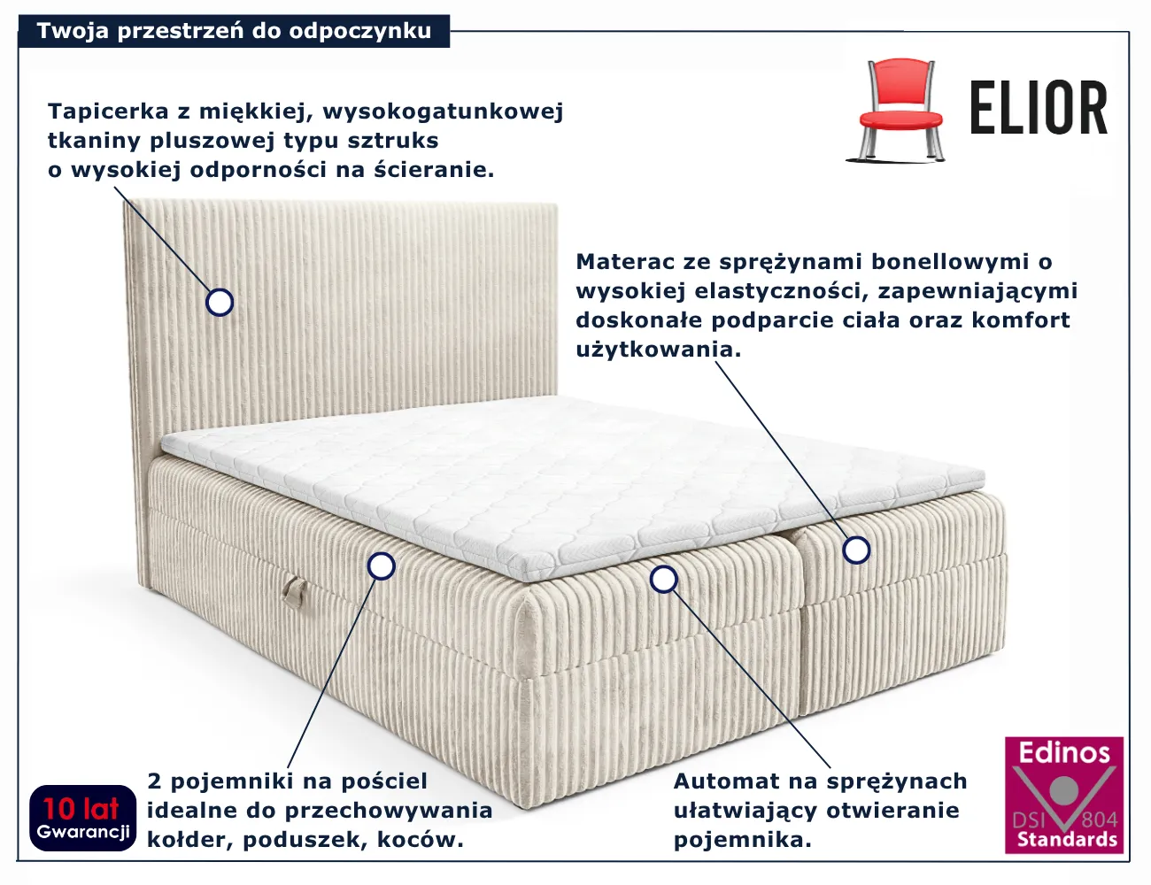 Kremowe łóżko kontynentalne 5 rozmiarów - Masseno