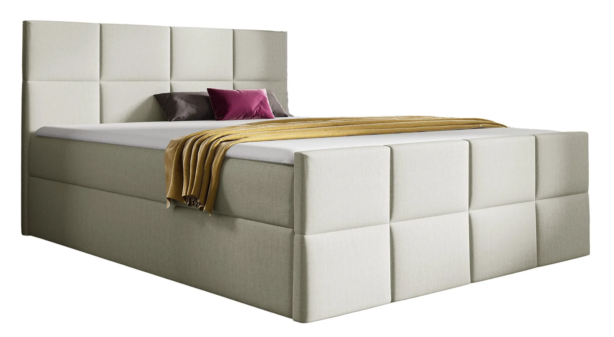 Kremowe łóżko tapicerowane 5 rozmiarów - Valmerio