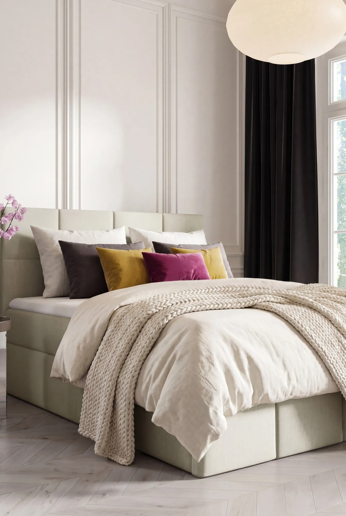 Aranżacja sypialni z kremowym łóżkiem kontynentalnym Valmerio