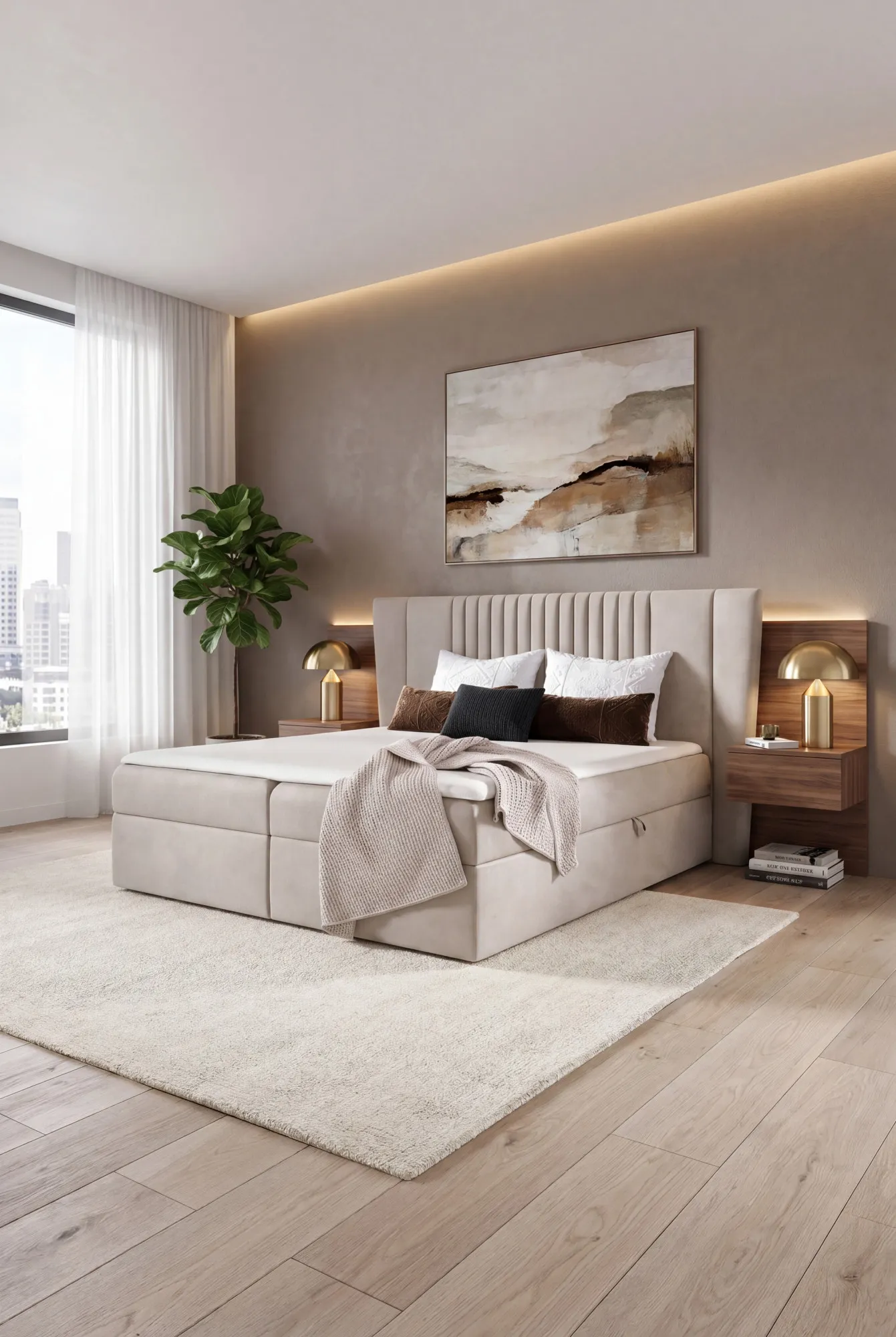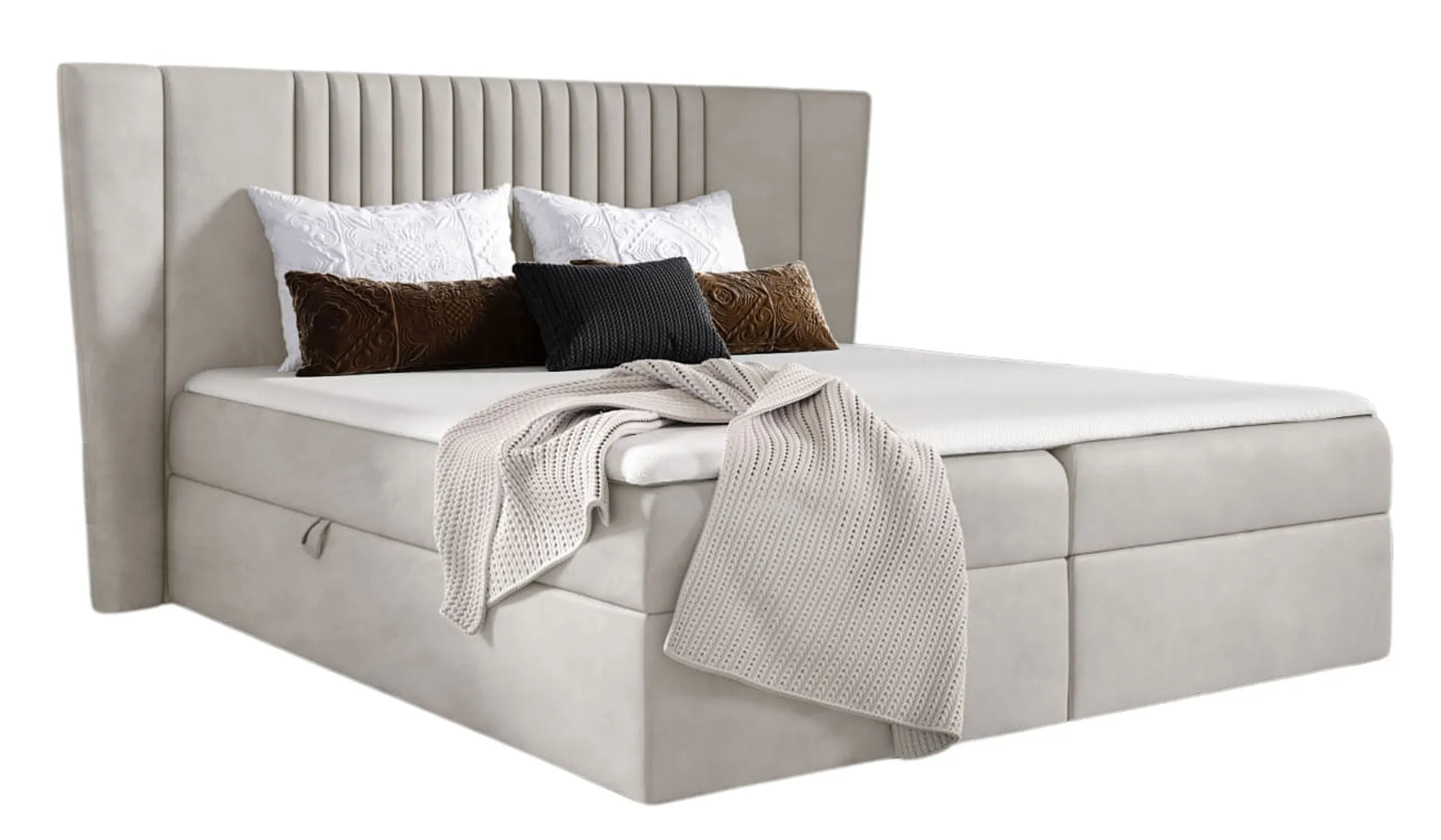 Aranżacja sypialni z kremowym łóżkiem kontynentalnym Orlento