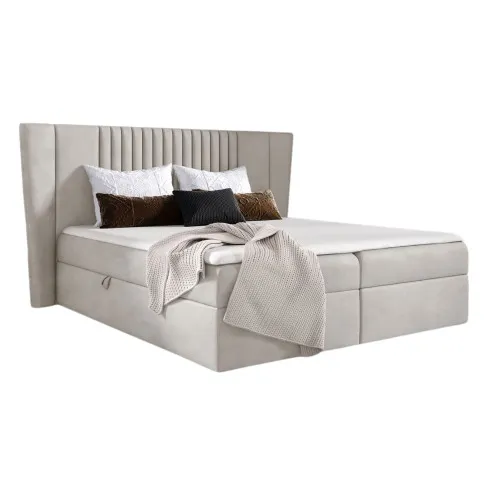 Kremowe łóżko tapicerowane z pojemnikiem 5 rozmiarów - Orlento