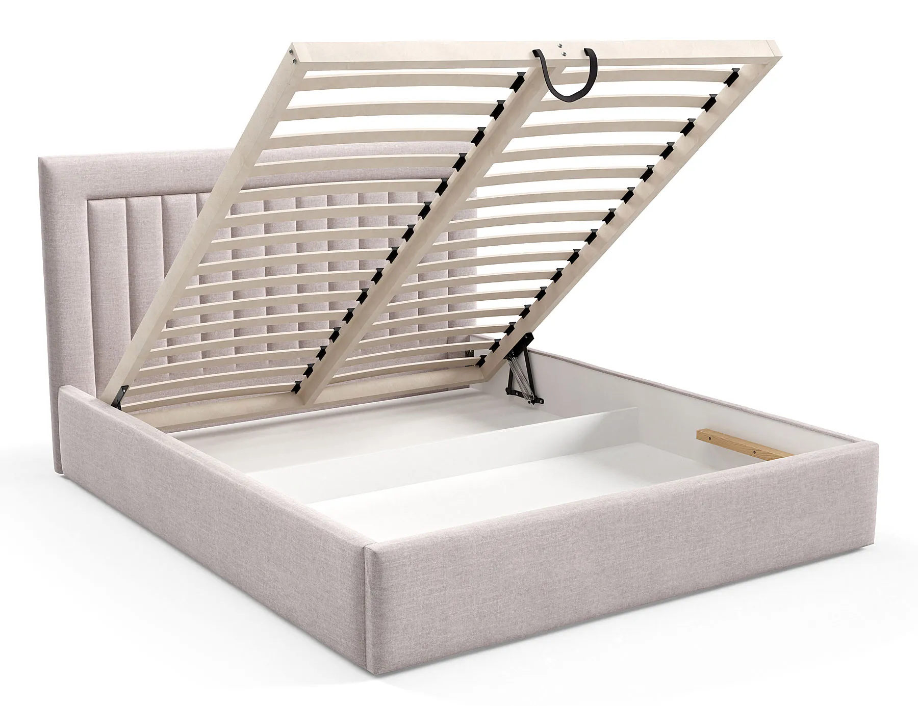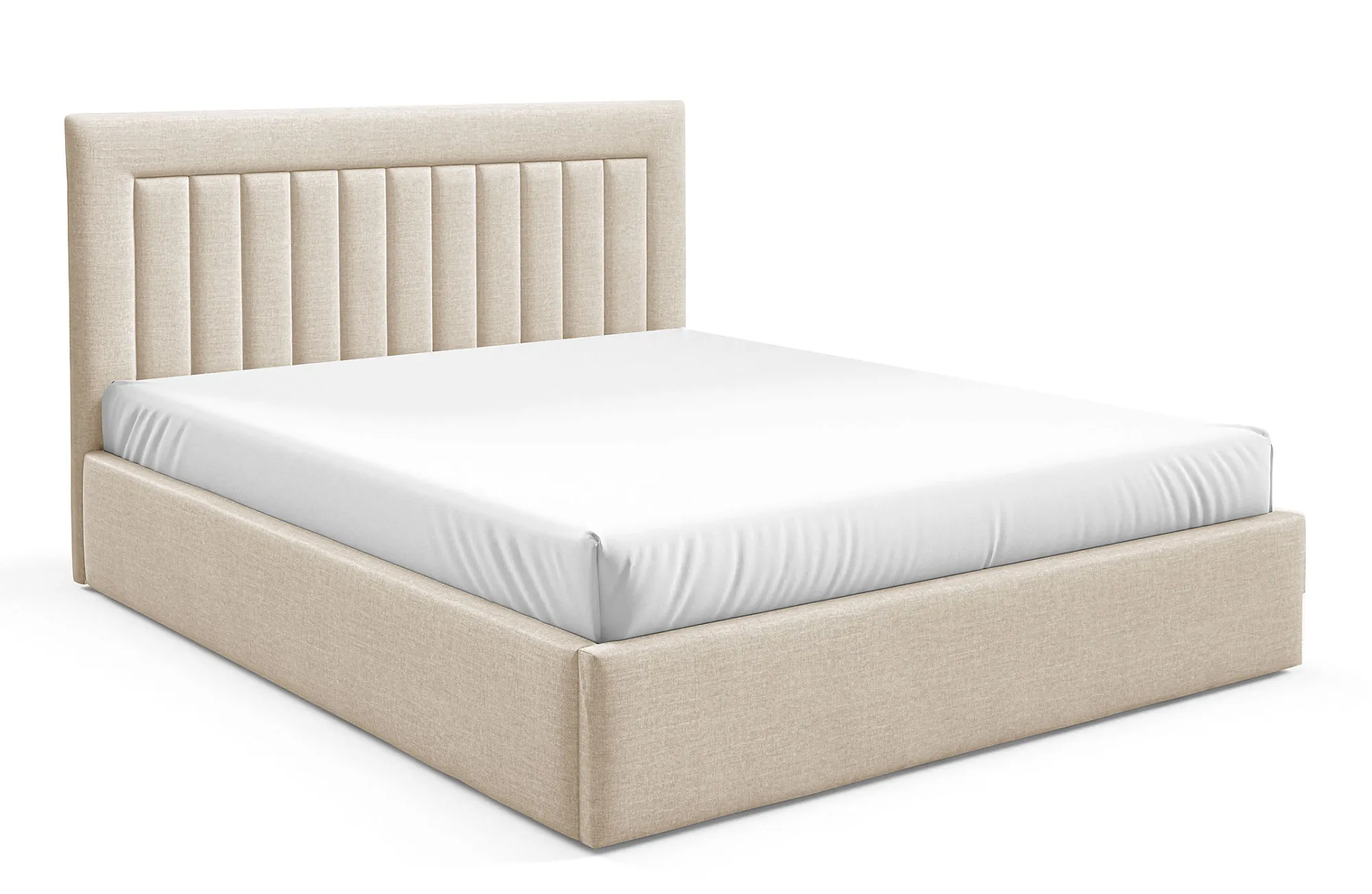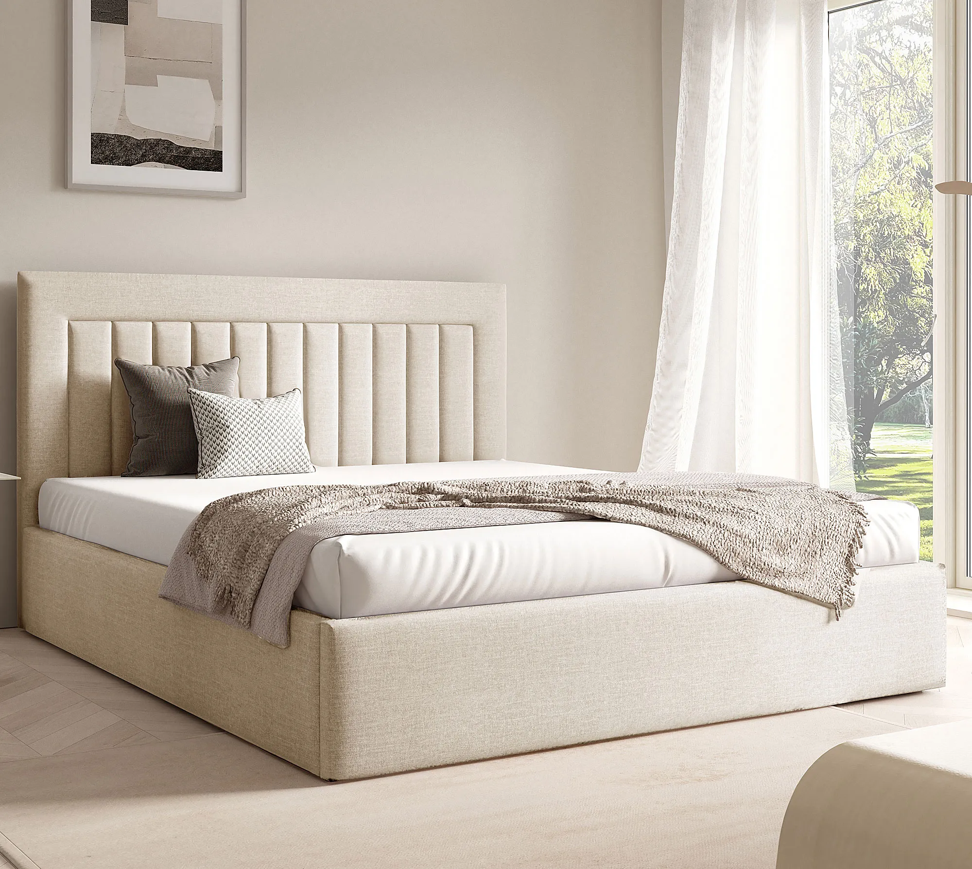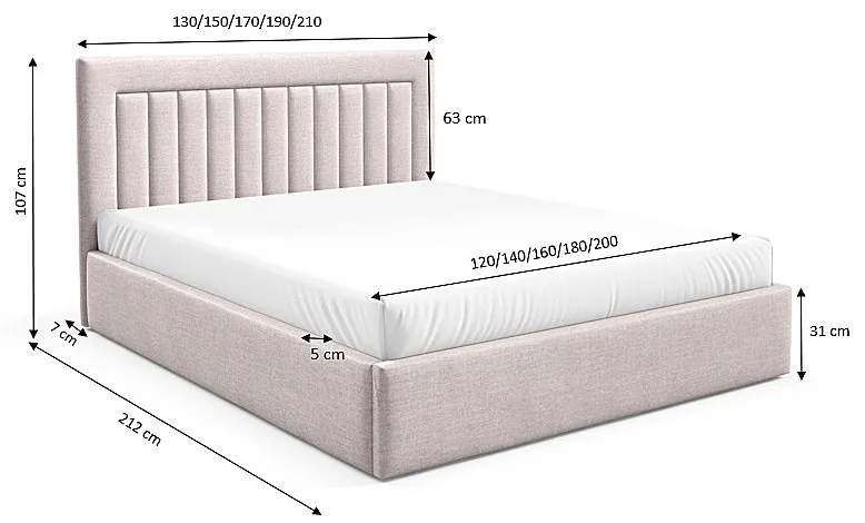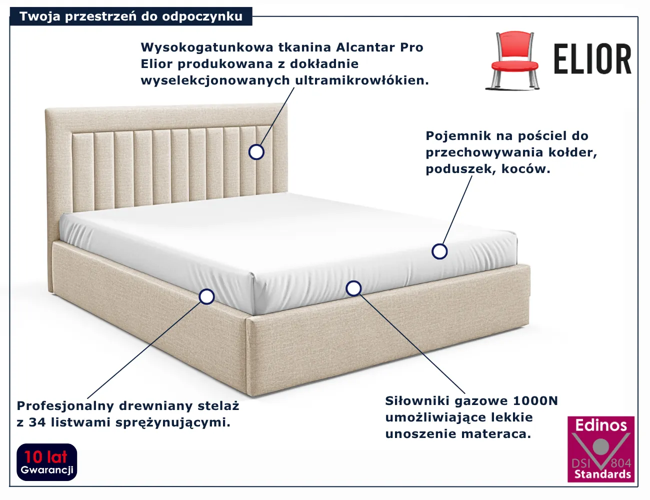 Dotyczy: Ciemobeżowe łóżko z pikowanym zagłówkiem 3 rozmiary - Merassi