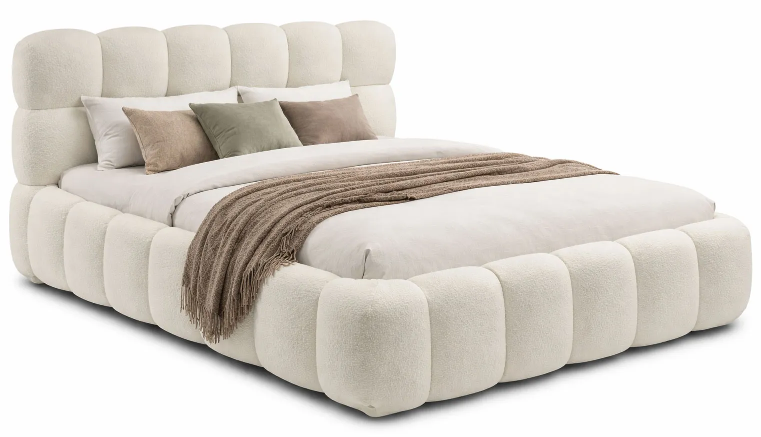 Kremowe nowoczesne łóżko tapicerowane boucle - Welles 3X 3 rozmiary