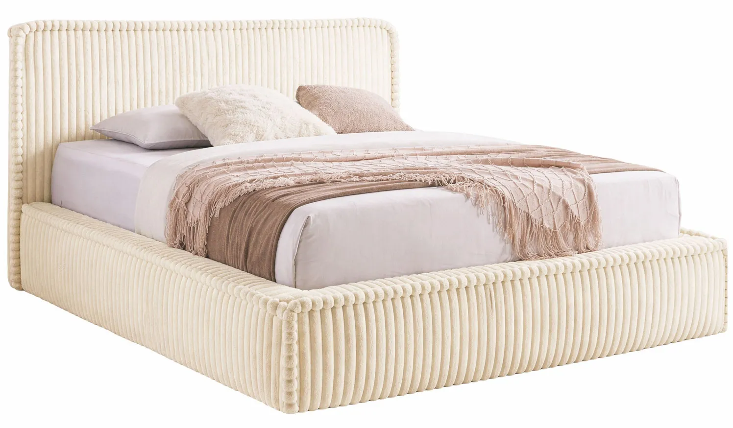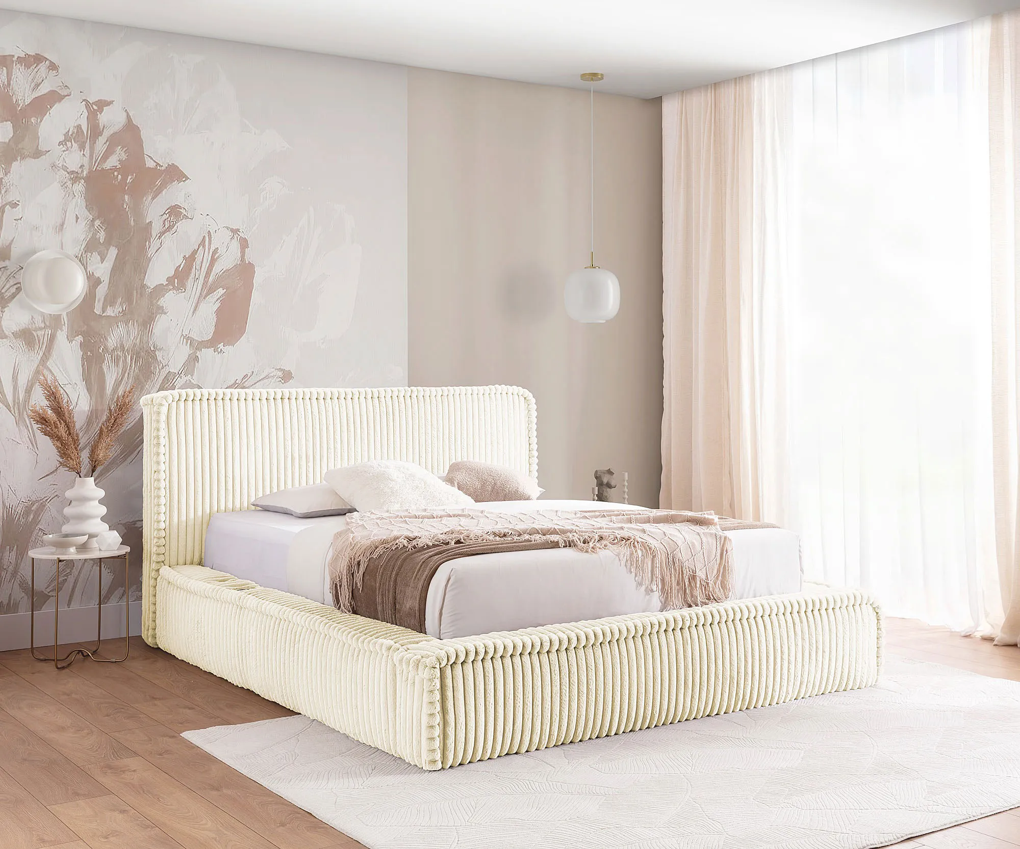 Kremowe sztruksowe łóżko tapicerowane 5 rozmiarów - Cordelio