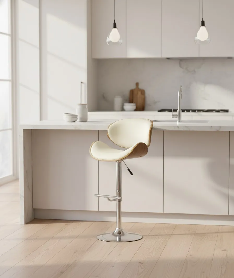 Wygląda bardzo elegancko kremowy kolor i tapicerka nadają wyspie kuchennej przyjemnego, stylowego charakteru. Materiał jest miękki w dotyku, a profil siedziska sprawia, że nawet dłuższe siedzenie przy blacie jest komfortowe. Fajnie komponuje się z innymi meblami, dla mnie po prostu świetny zakup.
