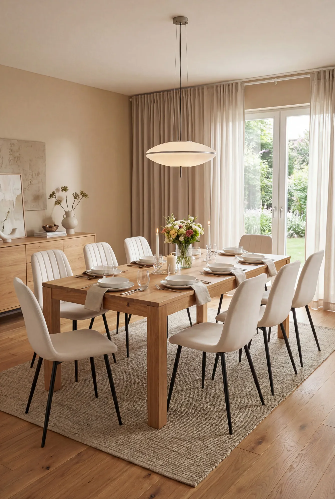 Aranżacja jadalni z kremowymi krzesłami Alveri