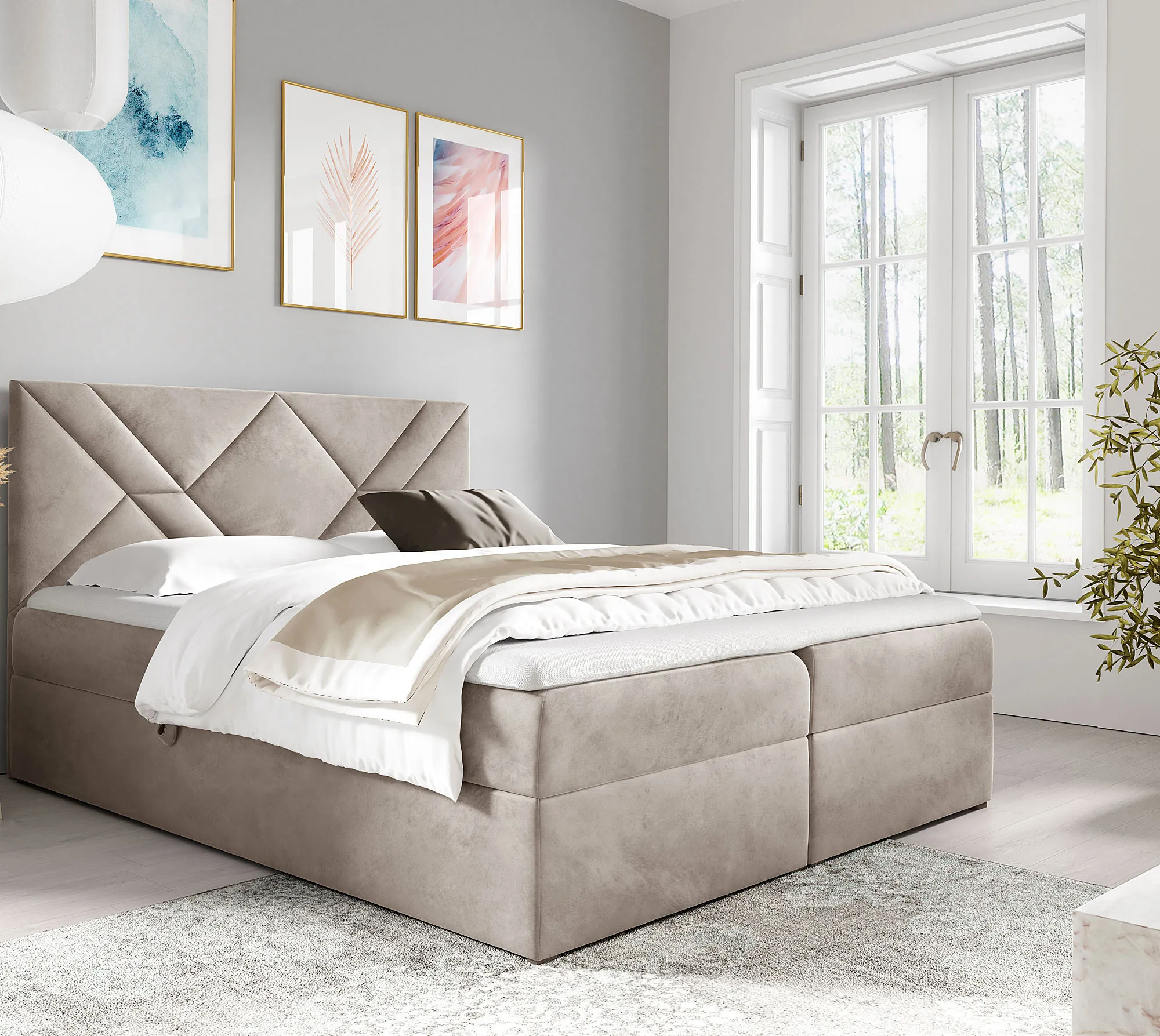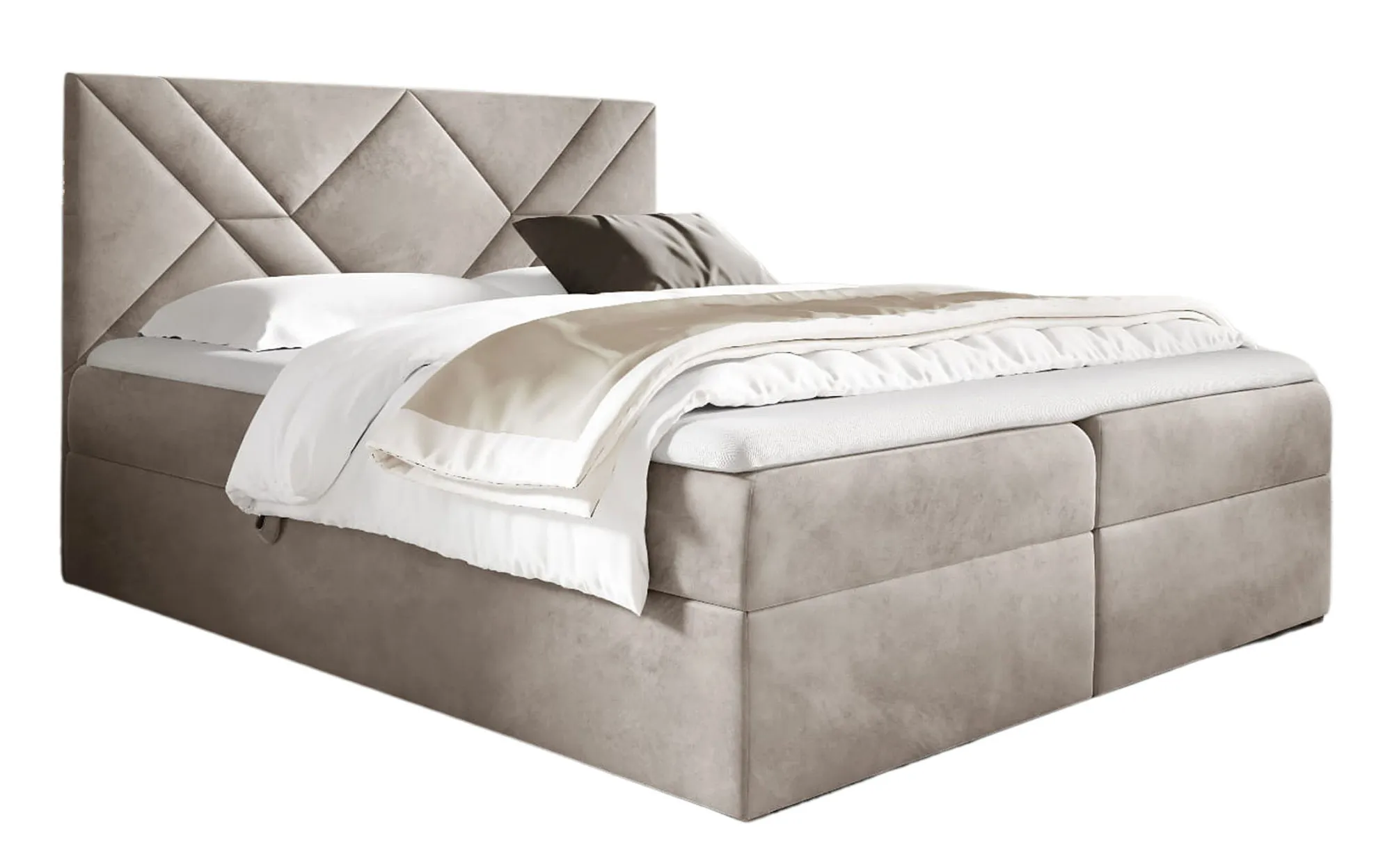 Velvaro marki Edinos Premium to łóżko kontynentalne stworzone z myślą o osobach poszukujących idealnego połączenia komfortu snu i eleganckiego designu. Wysokie, wygodne wezgłowie z dekoracyjnymi przeszyciami wyróżnia się nowoczesnym i dopracowanym stylem, który nadaje sypialni wyjątkowego charakteru. Przemyślana konstrukcja warstwowa zapewnia wsparcie dla kręgosłupa i sprzyja regeneracji, a zintegrowane pojemniki na pościel pomagają w zachowaniu porządku i pełnym wykorzystaniu przestrzeni. Velvaro to mebel, który codzienny odpoczynek przemienia w czystą przyjemność.