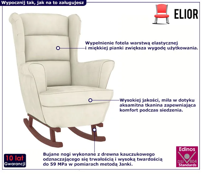 Dotyczy: Czerwony aksamitny fotel bujany uszak - Erato