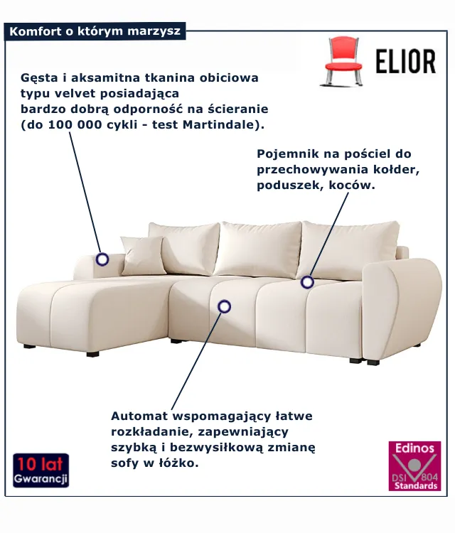 Kremowy narożnik rozkładany L - Velmores 4X