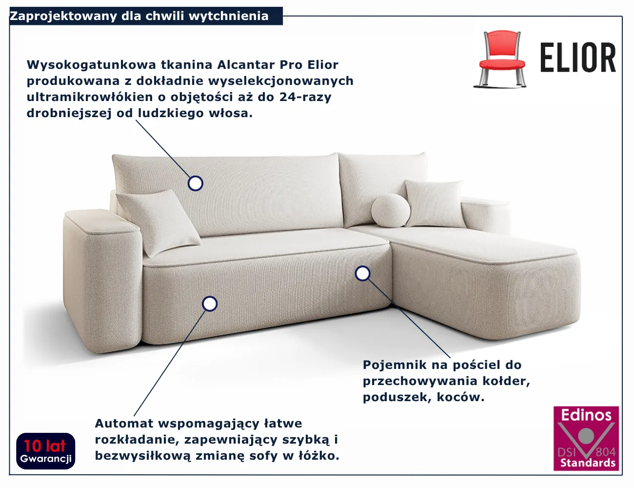 Kremowy narożnik rozkładany w kształcie litery L Mossira 3X