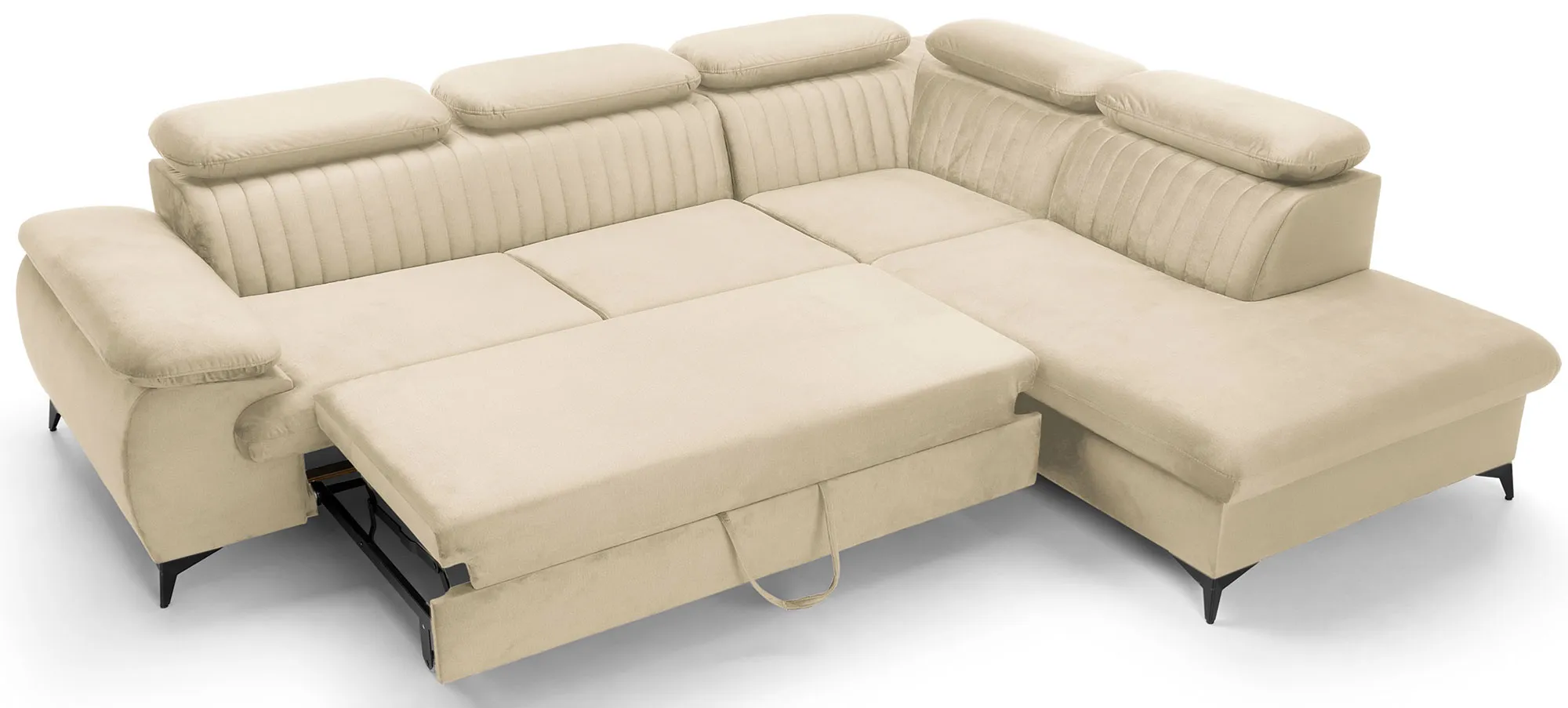 • Funkcja spania typu delfin – niezawodny, prosty w obsłudze mechanizm umożliwia szybkie przekształcenie narożnika w wygodne łóżko.