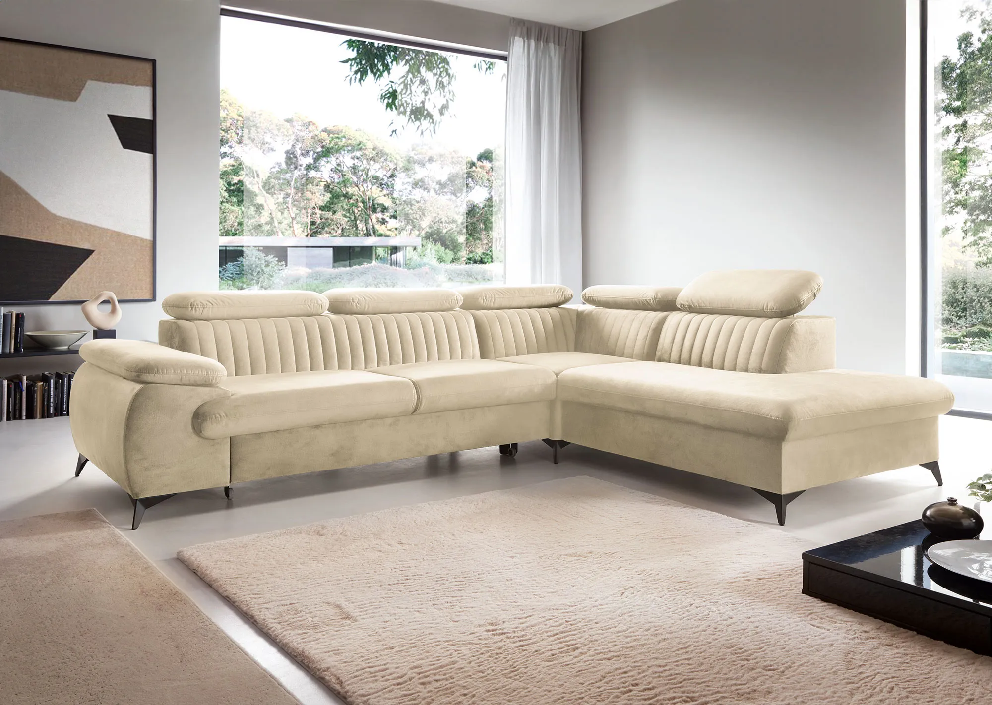 Kremowy narożnik z regulowanymi zagłówkami - Revioni 3X