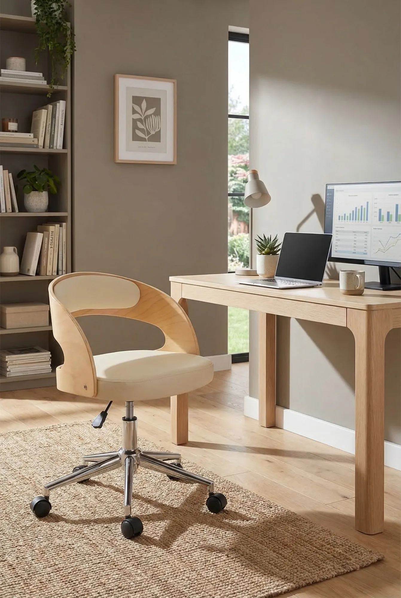 Dotyczy: Biały tapicerowany fotel obrotowy z drewnem orzechowym - Keltis 5X