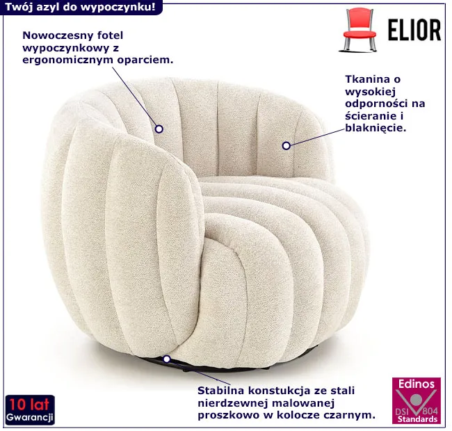 • Modny kolor: kremowy. Kliknij w link i sprawdź także inne fotele wypoczynkowe w sklepie Edinos.pl. Stwórz swój praktyczny zestaw mebli.