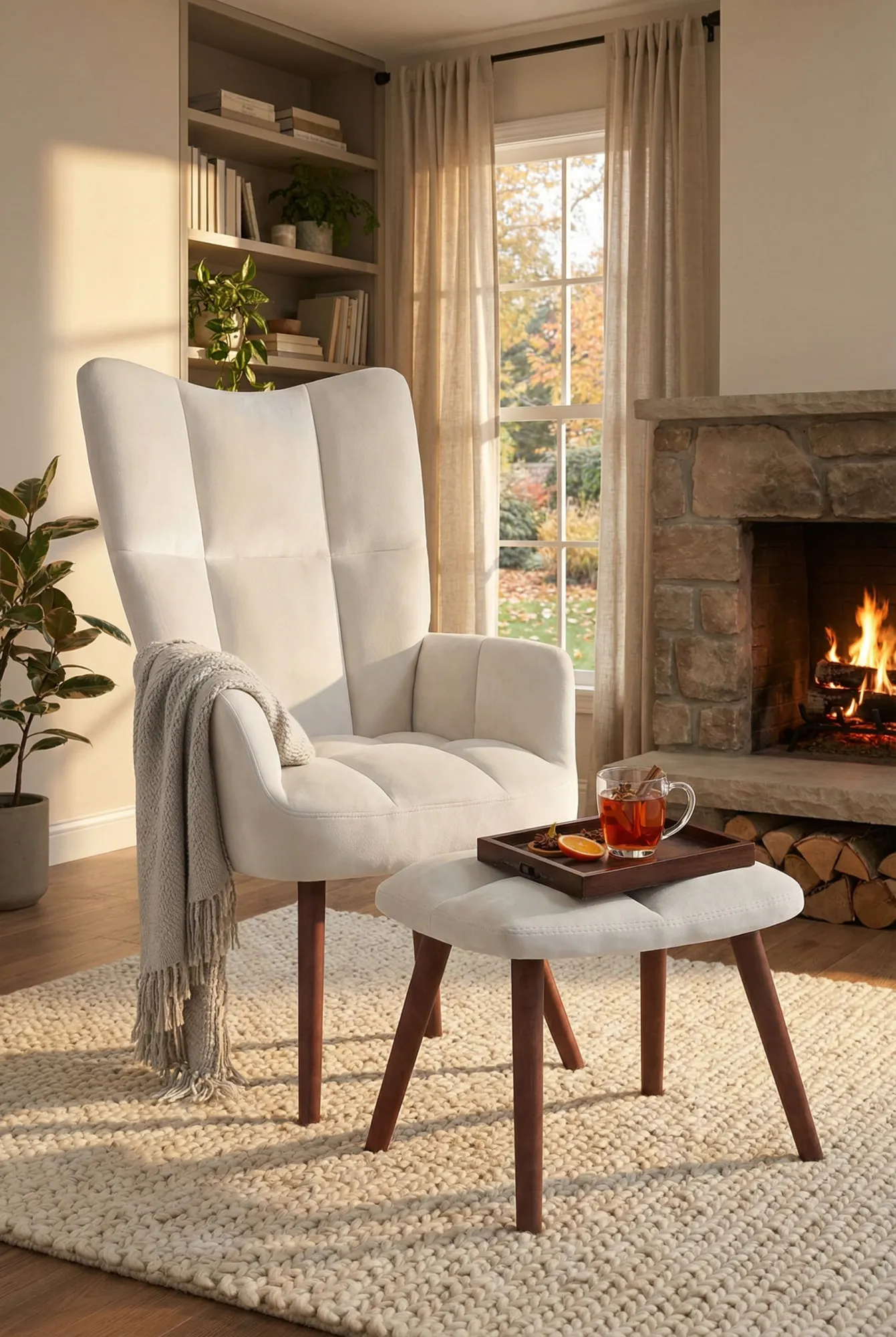 Wnętrze z kremowym fotelem Debora