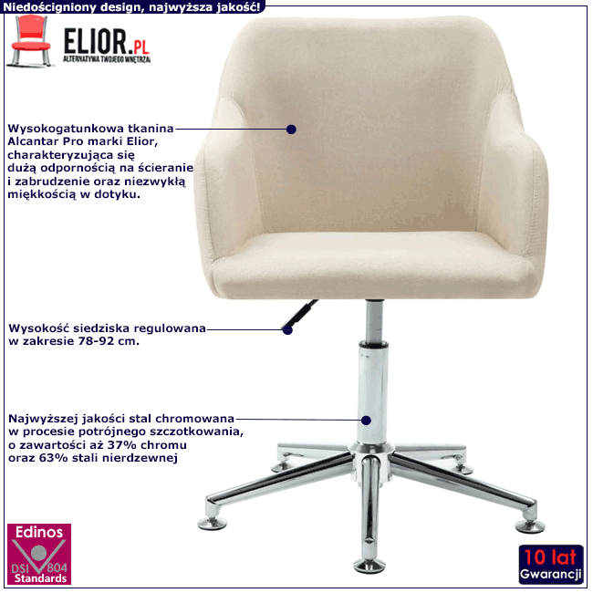 Dotyczy: Jasnoszary biurowy fotel obrotowy bez kółek - Asturix