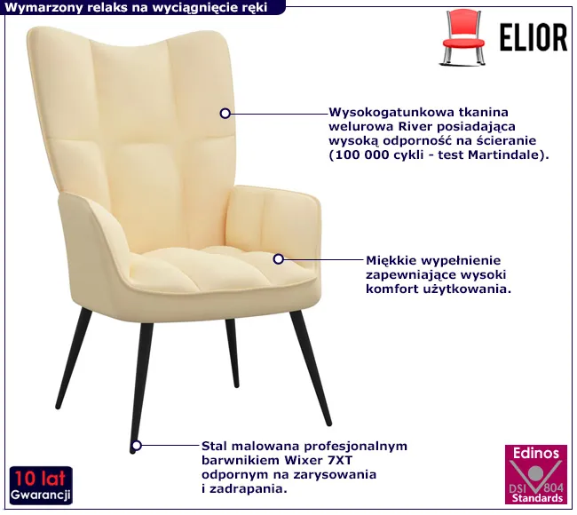 - Prosty, a zarazem wyrafinowany design fotela doskonale wpisuje się w nowoczesne aranżacje salonu lub sypialni.