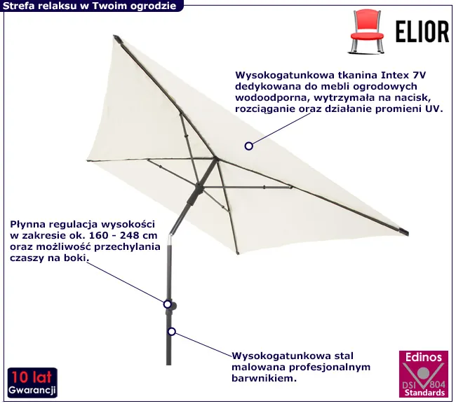 • Kolor: kremowy. Kliknij w link i sprawdź także inne parasole ogrodowe w sklepie Edinos.pl.