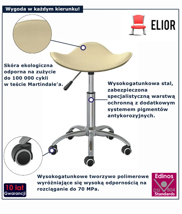 Dotyczy: Biały taboret obrotowy na kółkach - Movo