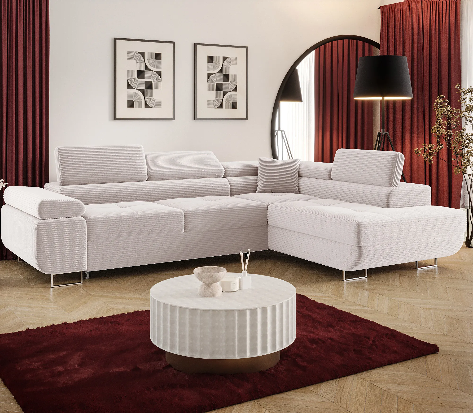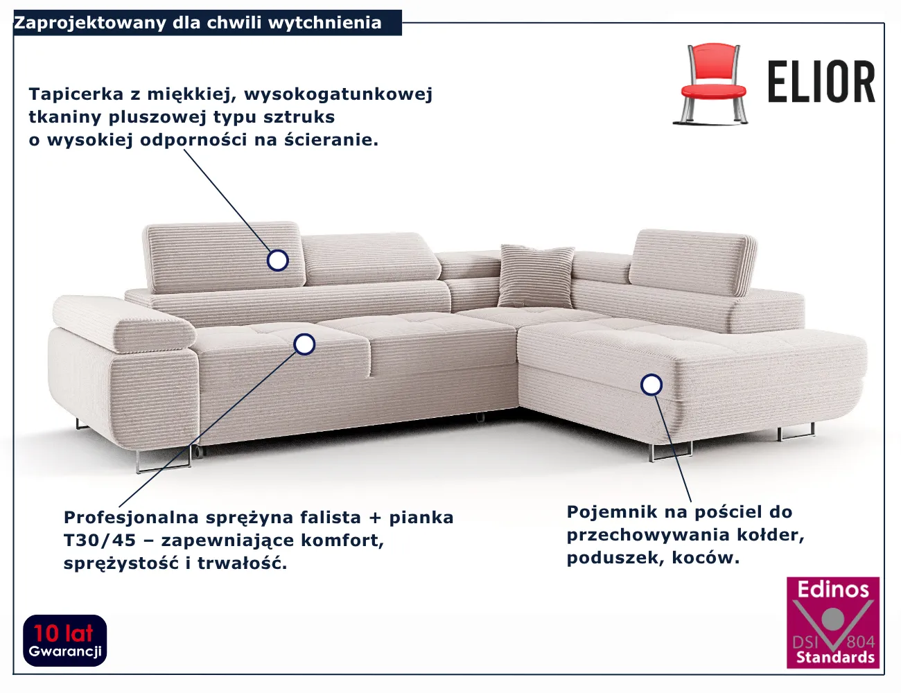 Kremowy sztruksowy narożnik rozkładany - Tavesso 4X