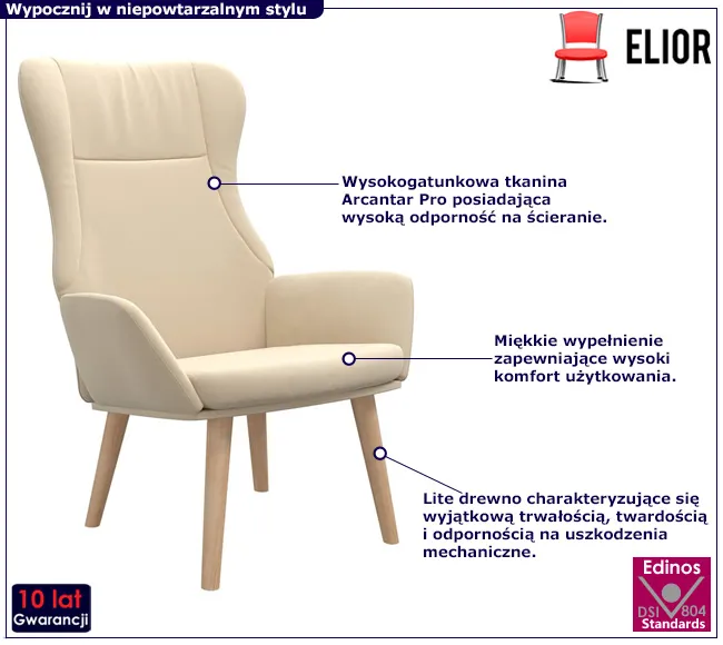 - Fotel ten, dodaje salonowi niepowtarzalnego stylu i zapewnia wyjątkowy komfort podczas odpoczynku.