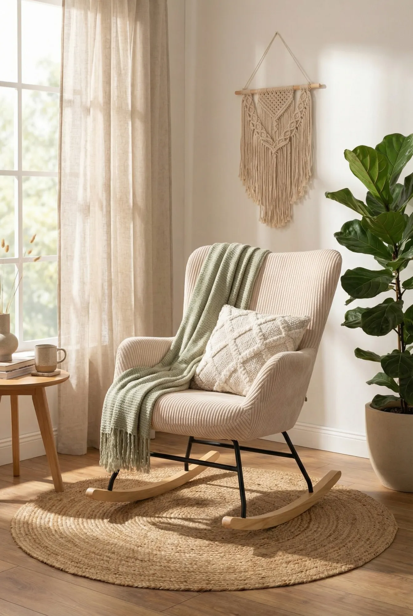Dotyczy: Oliwkowy fotel bujany w stylu skandynawskim - Hookani