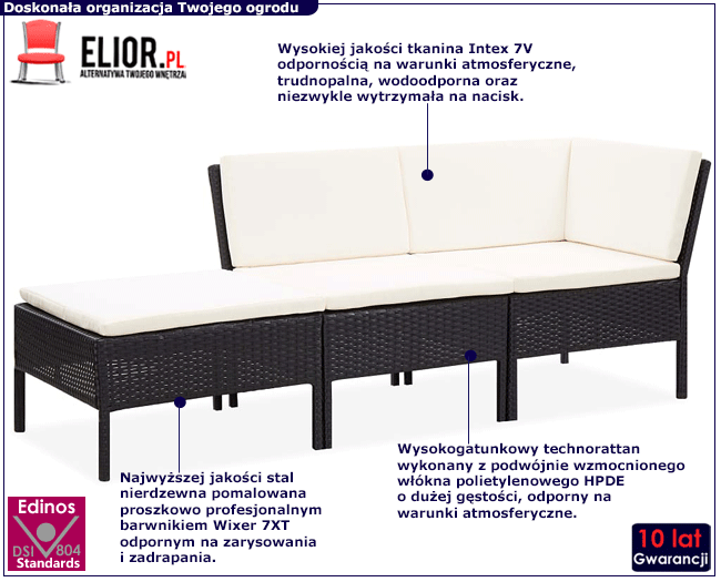 Dotyczy: Czarny zestaw wypoczynkowy leżanka do ogrodu - Inder